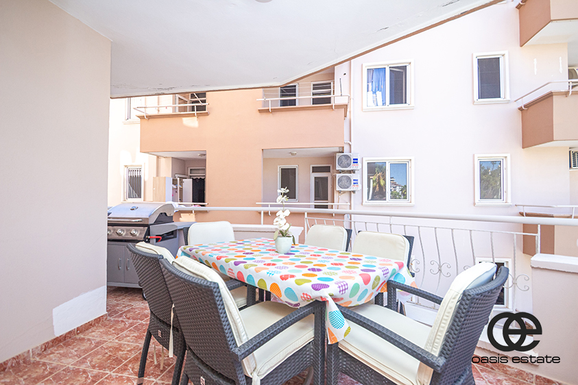 Der Komplex selbst bietet eine einladende Umgebung mit einem Swimmingpool, einem Landschaftsgarten und einem Parkplatz. Er liegt direkt neben dem Fluss Dim, wo ein malerischer Wanderweg entlang des Wassers verläuft, ideal für entspannte Spaziergänge. Der Strand ist ganz in der Nähe und über einen sicheren unterirdischen Gang leicht zu erreichen.