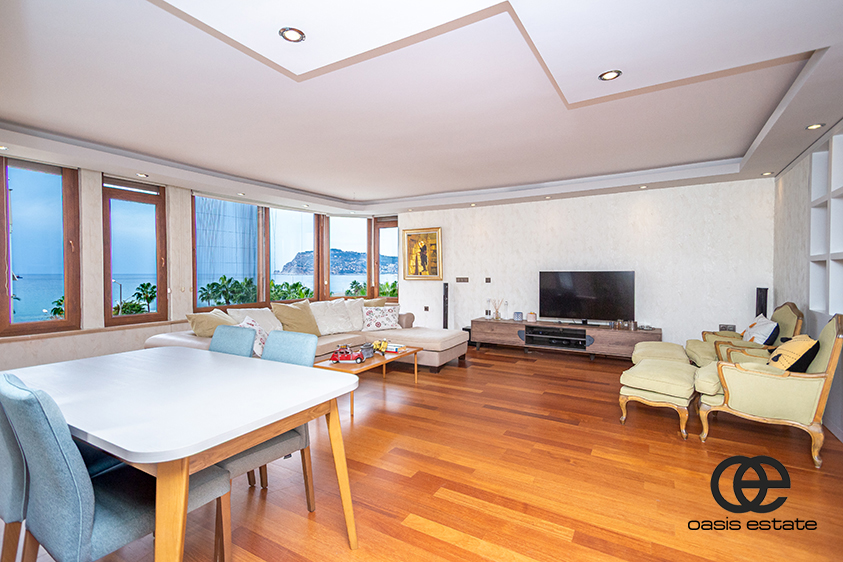 Diese 3-Zimmer-Wohnung im bekannten Salur Sitesi-Komplex in Oba bietet die seltene Gelegenheit, direkt am Meer zu wohnen. Mit uneingeschränktem Meerblick, Blick auf die Burg von Alanya und Blick auf die Berge verbindet die Immobilie Komfort mit einer unschlagbaren Lage.